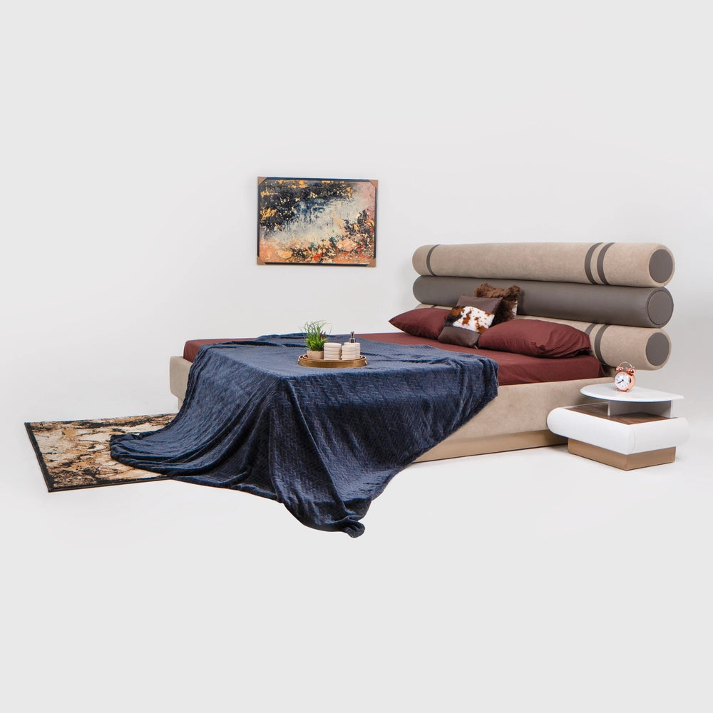 Upgrade your bedroom with our Loft Bed with Side Tables, featuring a sophisticated Light Brown & Chocolate Brown color scheme. Made with high-quality LR27/63 leather and 702/6 fabric, this King size set (72x78) offers luxurious comfort and elegance. Transform your space into a stylish sanctuary.