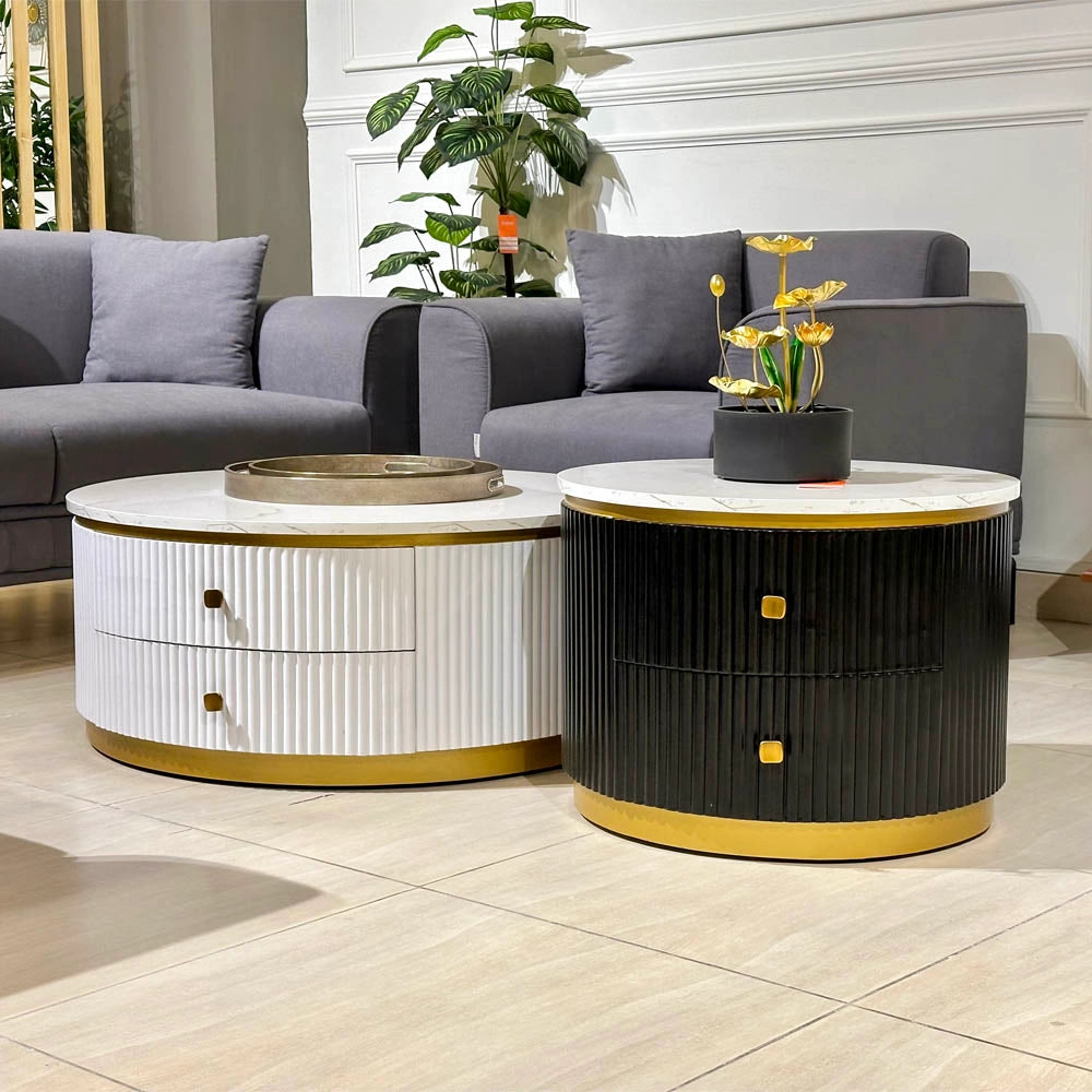 Emulating the grandeur of the Roaring ’20s and the Art Deco Movement, this pair of circular tables is as eye-catching as it is well crafted.